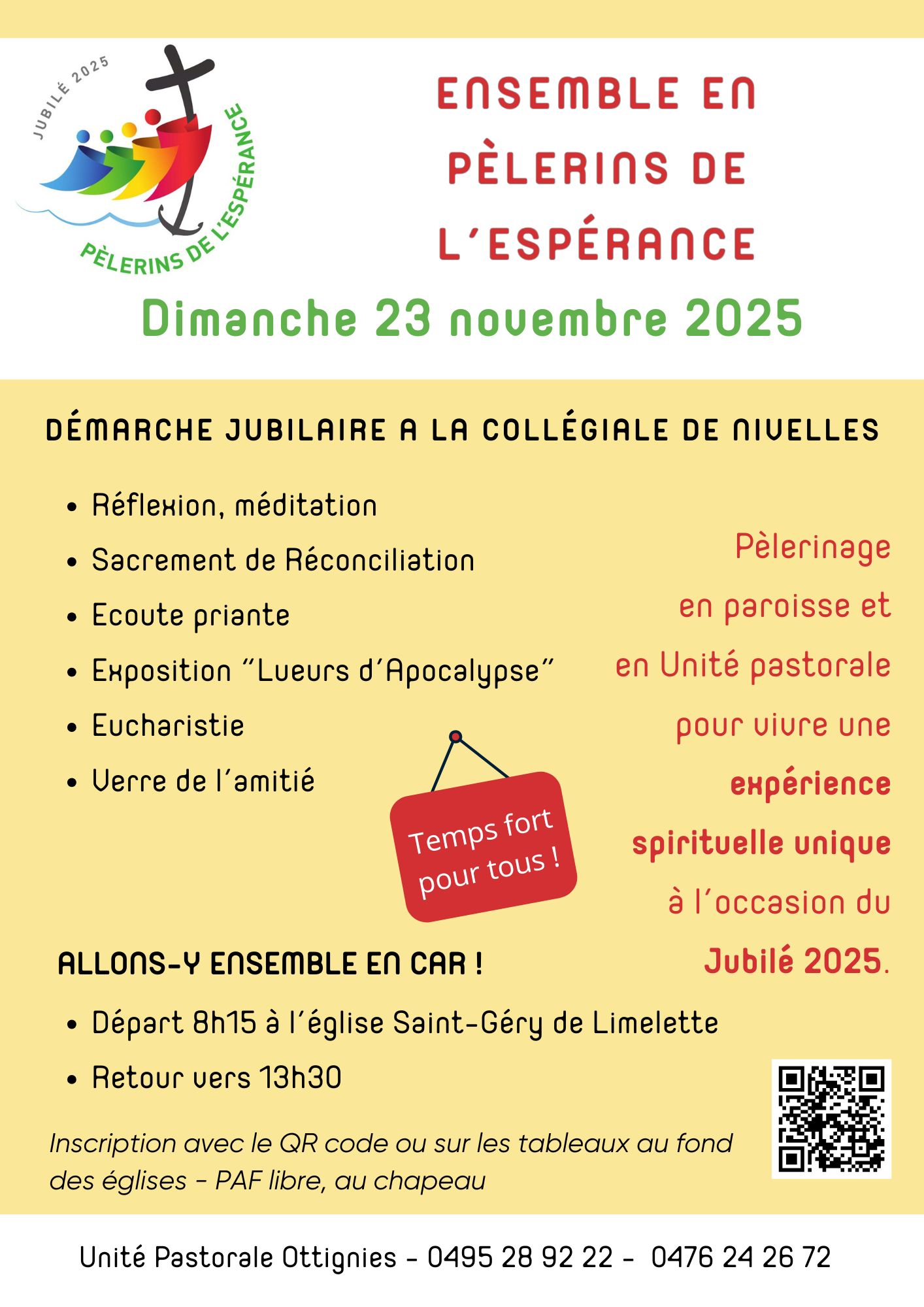 A l’occasion du Jubilé 2025, les paroisses de notre UP se mettent en route pour vivre un temps fort à la Collégiale Sainte-Gertrude de Nivelles, une des église jubilaire du Brabant wallon.