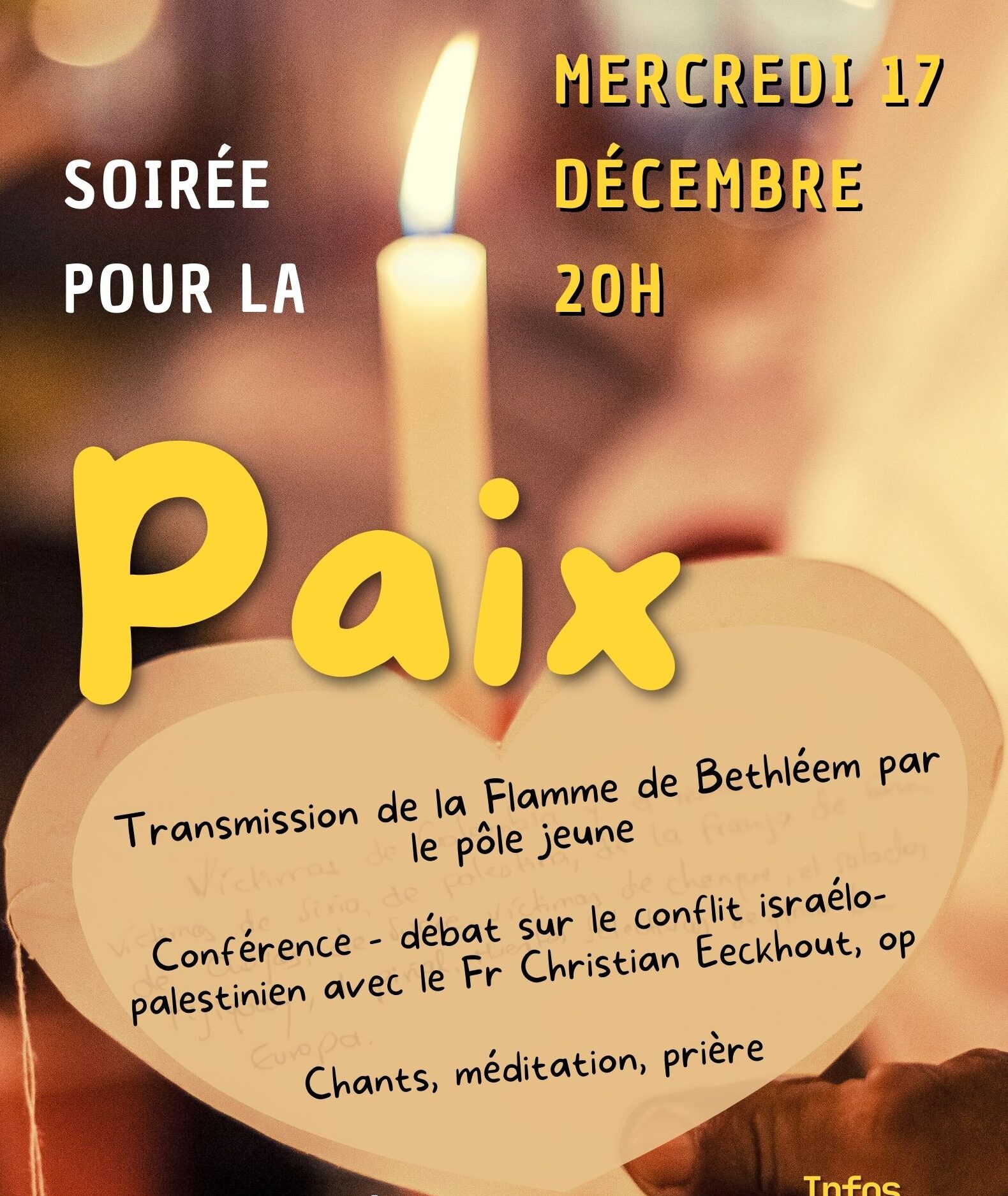 Notre pôle jeunes transmettra la flamme de Bethléem au cours de la soirée et la partagera à toutes les personnes présentes qui le souhaitent. Pensez à apporter votre lanterne.